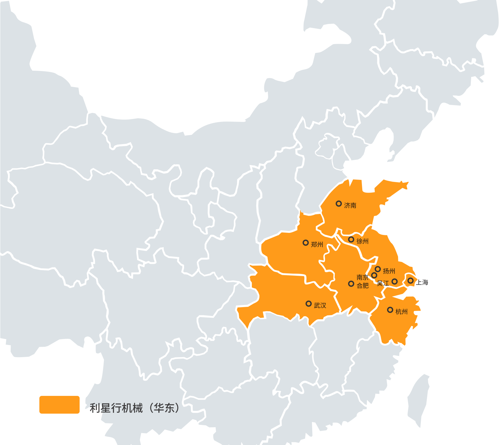 安徽、湖北、河南、江苏、山东、上海、浙江,7个省级服务中心,22个分公司,以及53个服务点,提供零件、维修、咨询及新旧大小租等一站式相关服务,有超过700人的售后服务团队为您的设备保驾护航。
